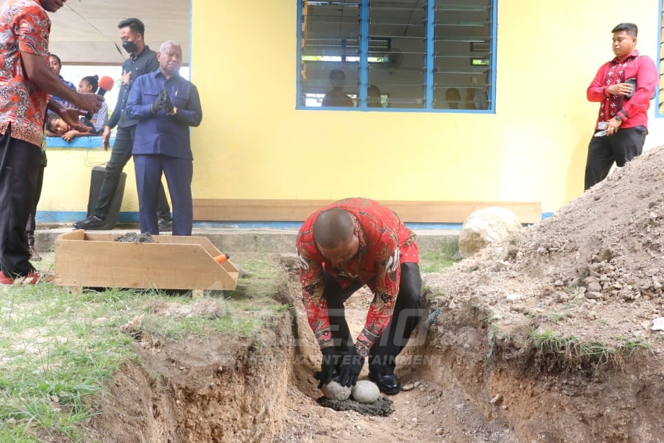 MANOKWARI – Dalam peletakan batu pertama pembangunan gedung Gereja Persekutuan Kristen Alkitab Indonesia (GPKAI) Jemaat Yerusalem Baru Sowi IV, Bupati Manokwari Hermus Indou mengajak agar seluruh Jemaat turut ikut berkorban dalam pembangunan gereja, Senin (16/5/2022).
