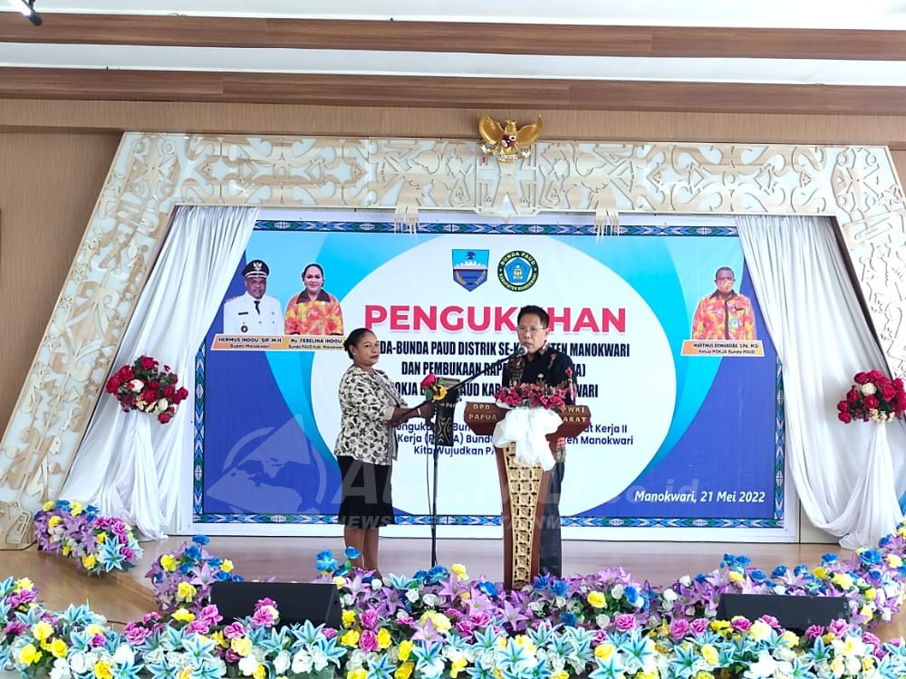MANOKWARI – Rapat Kerja (Raker) II Pokja Bunda PAUD Kabupaten Manokwari, di buka oleh Wakil Bupati Manokwari Edi Budoyo dengan harapan agar anak usia dini memperoleh pendidikan yang berkualitas. Raker ini dilaksanakan di Gedung PWKI Papua Barat, Sabtu (21/5/2022).