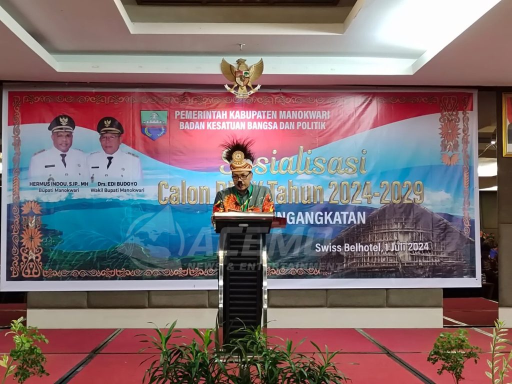 MANOKWARI – Pemerintah Kabupaten Manokwari melalui Badan Kesbangpol menggelar sosialisasi calon Dewan Perwakilan Rakyat Kabupaten (DPRK) tahun 2024-2029 jalur pengangkatan, yang terselenggara di salah satu hotel di Manokwari, Senin (1/7/2024).