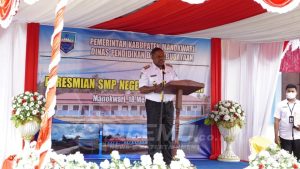 Dalam sambutannya, Bupati Manokwari Hermus Indou menyampaikan kurang lebih dalam 3 tahun terakhir, Dinas Pendidikan telah berupaya melalui program dan kegiatan penyelenggaran Pendidikan di Manokwari untuk menyediakan dan mendirikan SMP sehingga hari ini dapat diresmikan bersama.