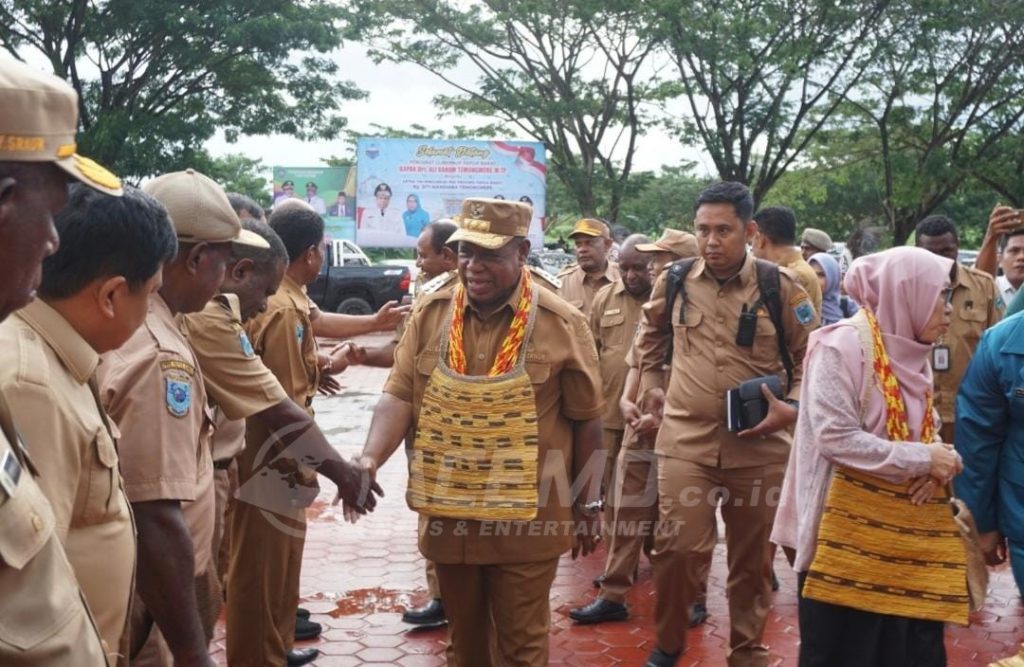 Bupati Manokwari Hermus Indou mengucapkan selamat datang kepada PJ Gubernur Ali Bahan Temongmere dimana pada hari pertaman menjabat, dirinya langsung mengunjungi Kantor Bupati.