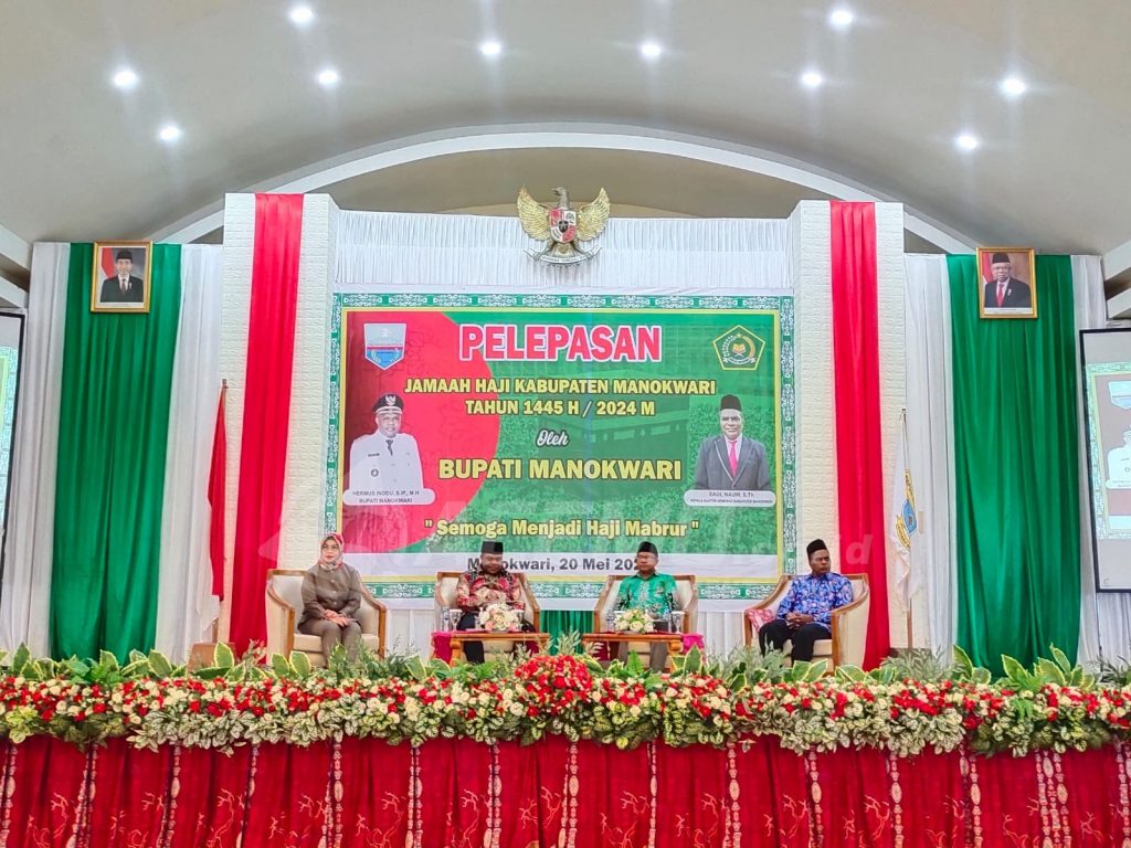 MANOKWARI – Bupati Manokwari melepas 171 jamaah Haji Kabupaten Manokwari tahun 1445 H/ 2024 M, yang di gelar di salah satu hotel di Manokwari, Senin (20/5/2024).