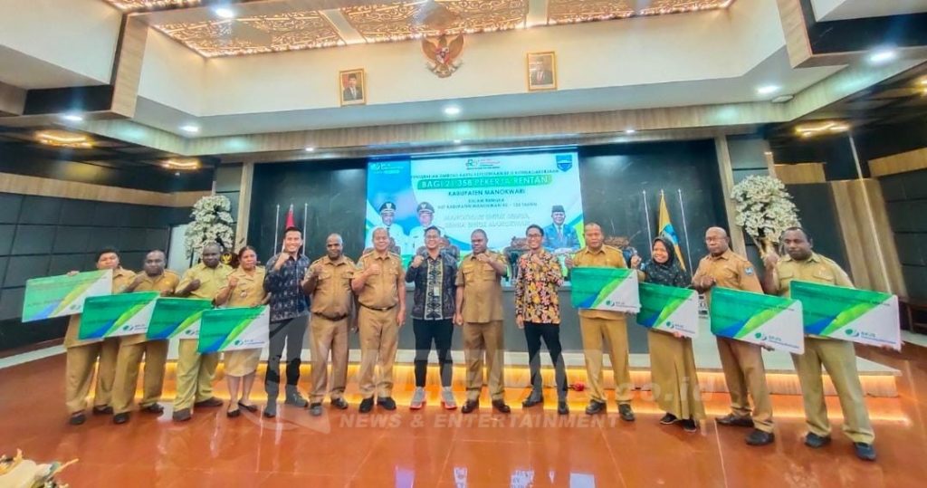 MANOKWARI – Bupati Manokwari menyerahkan secara simbolis kartu kepesertaan BPJS Ketenagakerjaan Bagi 21.358 pekerja rentan dalam rangka HUT Manokwari ke-125 tahun, Selasa (24/10/2023).