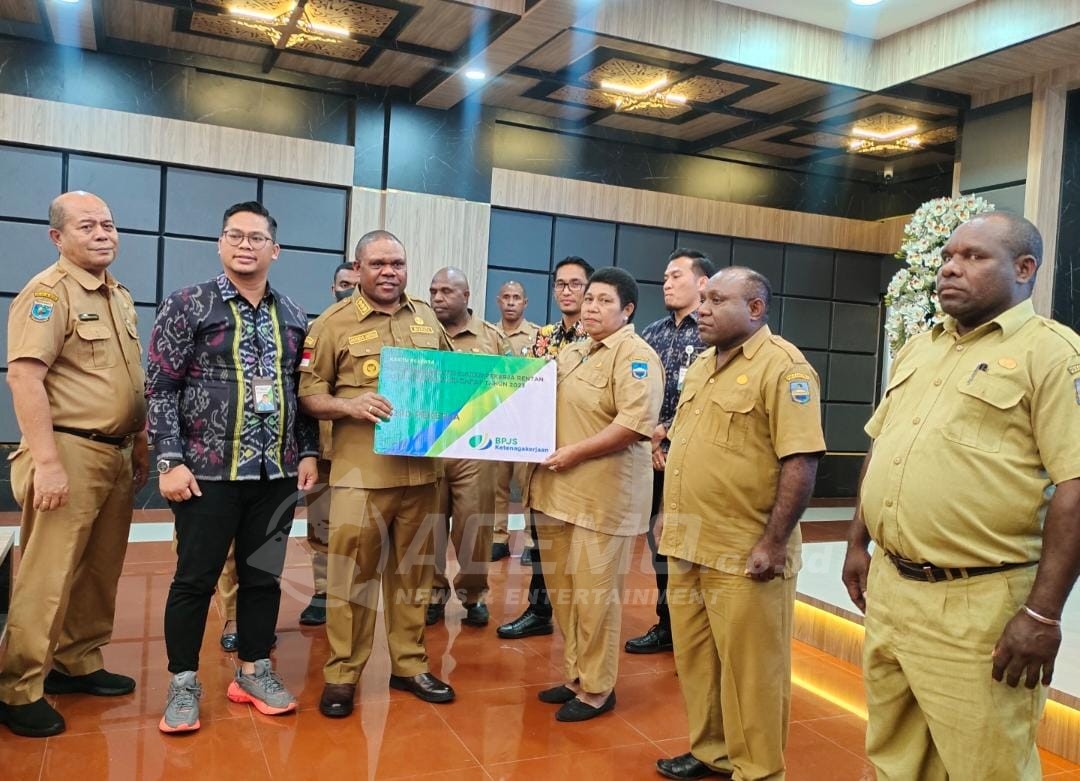 Penyerahan kartu kepesertaan BPJS Ketenagakerjaan Bagi 21.358 pekerja rentan diberikan kepada 9 Distrik yaitu
