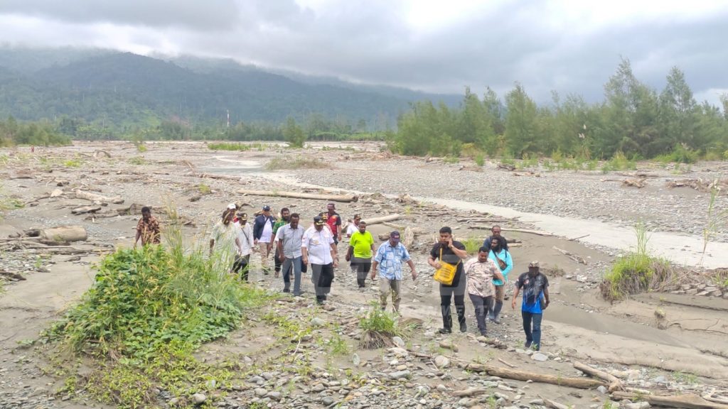 MANOKWARI – Bupati Manokwari Hermus Indou turun langsung ke lapangan untuk melihat dampak banjir akibat meluapnya kali Mansaburi dan Kali Wariori di Distrik Masni, Rabu (8/5/2024).