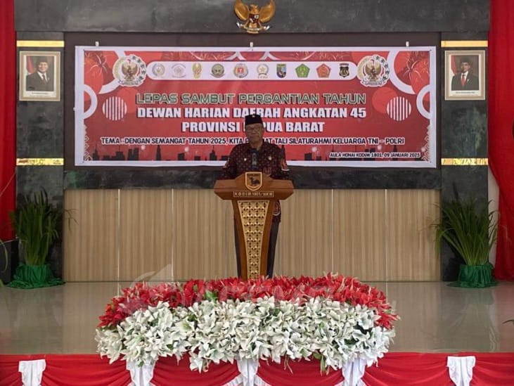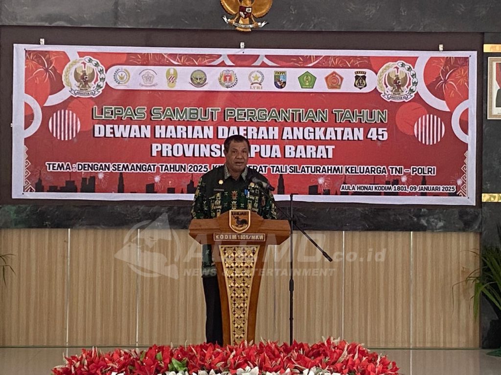 MANOKWARI – Dewan Harian Daerah Angkatan 45 Provinsi Papua Barat menggelar lepas sambut tahun baru 2025, Kamis (9/1/2025) bertempat di Aula Kodim 1801/Manokwari. Acara ini melibatkan Persatuan Purnawirawan dan Warakawuri TNI/Polri (PEPABRI), Persatuan Purnawirawan Angkatan Darat (PPAD), Persatuan Purnawirawan Angkatan Laut (PPAL), Persatuan Purnawirawan Polri (PP Polri), Legium Veteran Republik Indonesia (LVRI), Persatuan Istri Purnawirawan (Perip), Persatuan Istri Veteran Republik Indonesia (Piveri), Para Pejuang Angkatan 45, Forum Komunikasi Putra Putri Purnawirawan Putra Putri TNI POLRI (FKPPI), Pemuda Panca Marga (PPM) dan Himpunan Putra Putri Angkatan Darat (HIPAKAD) tingkat Provinsi Papua Barat maupun Manokwari .