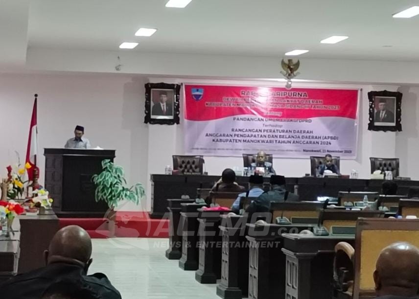 MANOKWARI – Beberapa masukan dan pandangan umum fraksi terhadap rancangan peraturan daerah anggaran pendapatan dan belanja negara (APBD) tahun anggaran 2024 Pemkab Manokwari, disampaikan Pada Rapat Paripurna Dewan Perwakilan Rakyat Daerah (DPRD) Kabupaten Manokwari,Kamis (23/11/2023).