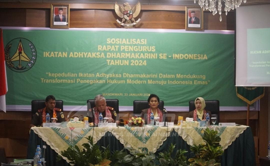 MANOKWARI – Menggelar Sosialisasi Rapat pengurus Ikatan Adhyaksa Dharmakarini (IAD) Wilayah Papua Barat, Kajati harap dapat menjadi bagian dalam transformasi penegakan hukum yang lebih maju dan modern yang diselenggarakan di salah satu hotel di Manokwari, Selasa (23/1/2024).