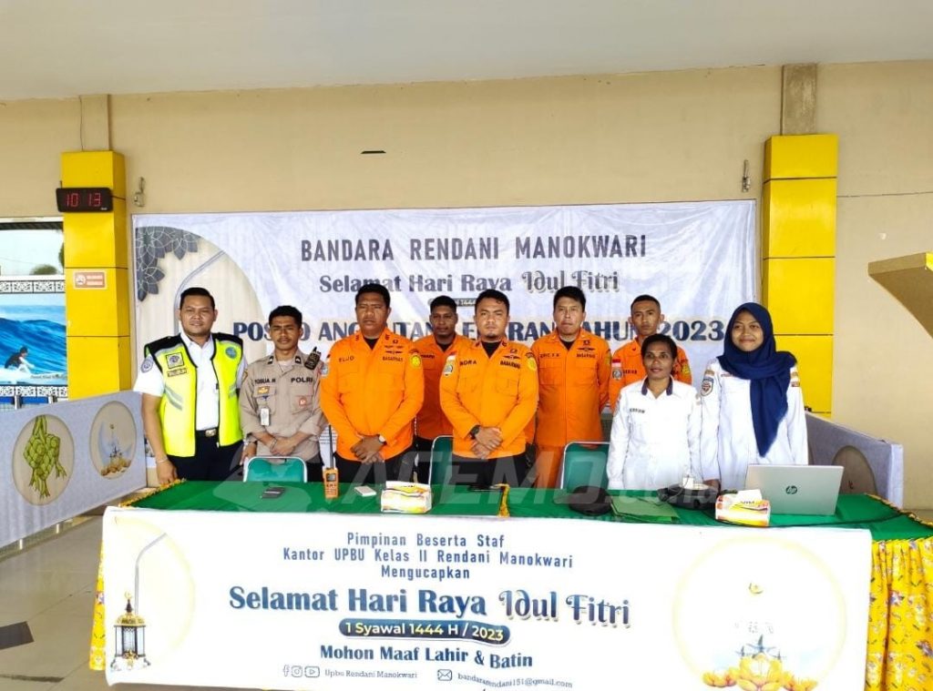 Untuk mengantisipasi terjadi lonjakan, Bandara Rendani menyiapkan Posko Angkutan Lebaran yang sudah dibuka sejak 14 April hingga 2 Mei mendatang. Posko ini tak hanya melakukan pengamanan, tetapi juga menyediakan fasilitas kesehatan bagi penumpang, yang dijaga sebanyak 15 personil gabungan dari Basarnas, TNI-Polri, dan Petugas KKP. (ACM_2)