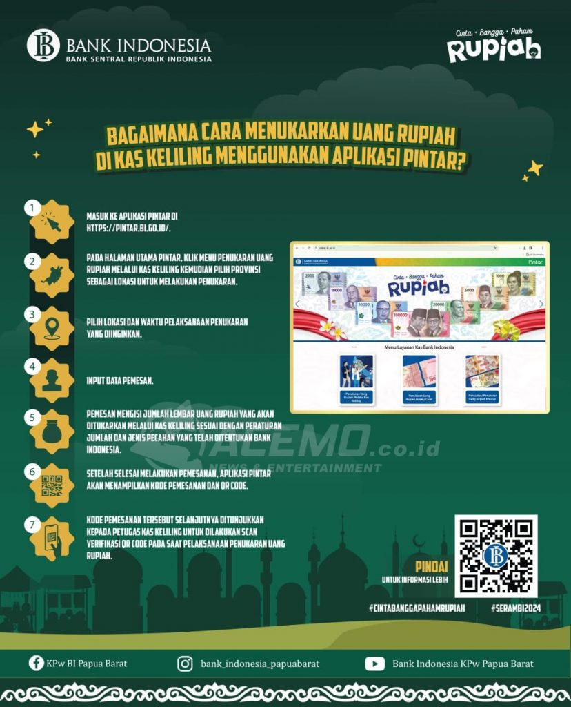 Lanjut, Setian menambahkan dalam kegiatan SERAMBI 2024 ini terdapat 3 kegiatan ułama yang akan dilakukan oleh Bank Indonesia bekerjasama dengan seluruh perbankan, yaitu kegiatan penukaran uang dengan membuka layanan penukaran di 10 titik jaringan kantor bank yang tersebar di seluruh wilayah Papua Barat.