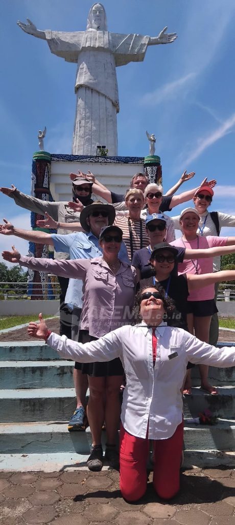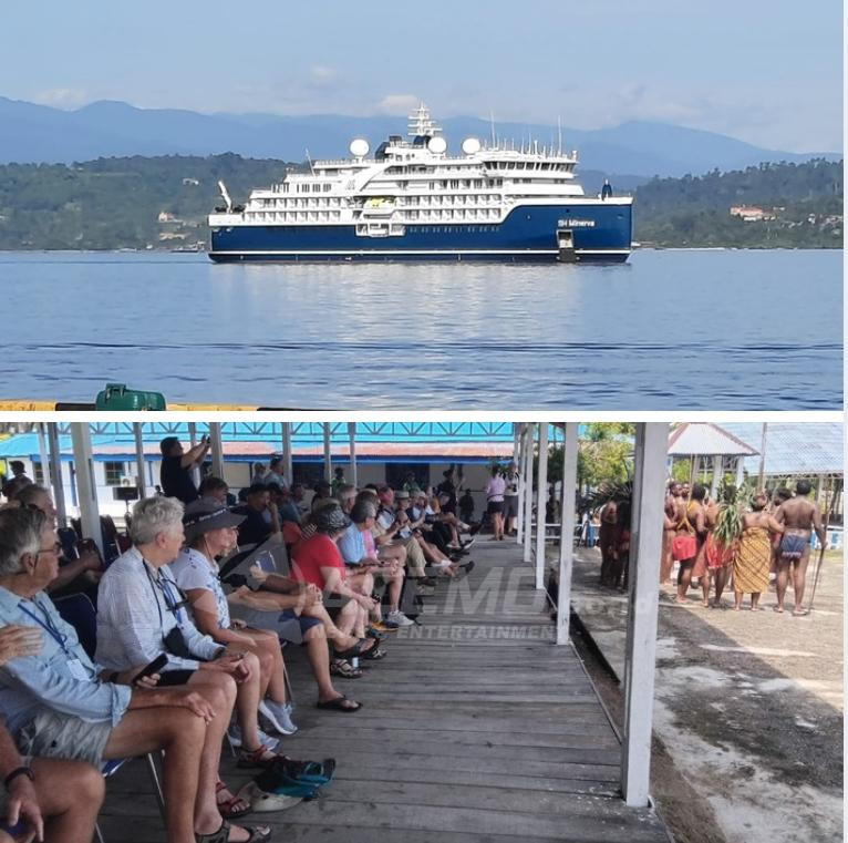 MANOKWARI – Kapal pesiar MH Minerva-Swan Hellenic tiba di Pulau Mansinam Kabupaten Manokwari, Provinsi Papua Barat, Jumat (17/4/2026). Kapal wisata ini membawa wisatawan mancanegara sebanyak 101 wisatawan dari berbagai negara seperti New Zealand, Italy, Australia, UK, Germany, USA, Sweden, Canada, dan Rusia.