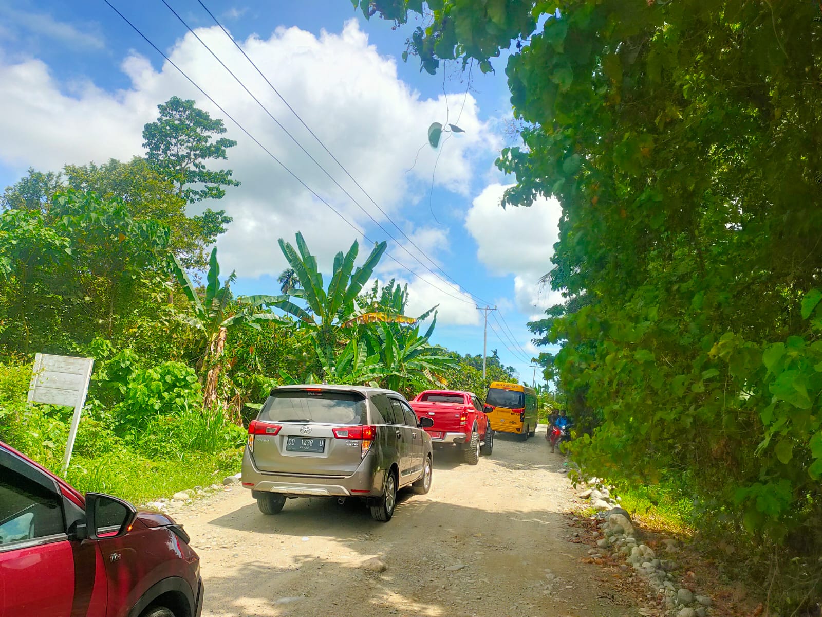 ” Ya selama di jalan tadi, kita digoyang-goyang serong kiri, serong kanan,”jawab Dirjen sambil tersenyum saat di tanya awak media, usai melakukan tatap muka dengan masyarakat kampung Hamor.