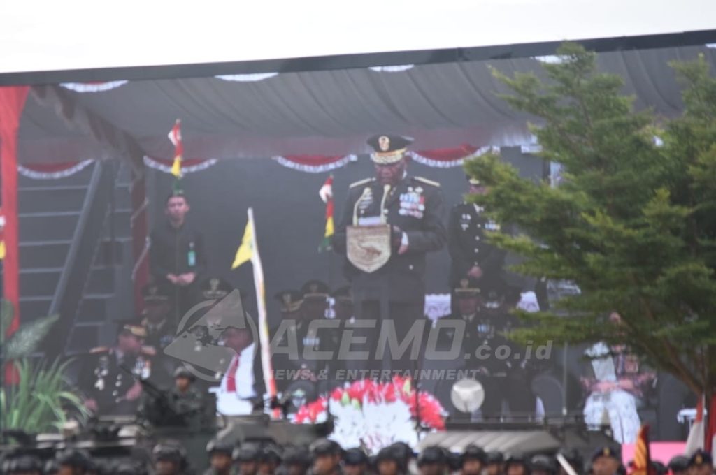 “ Selanjutnya, pada momentum ini saya juga ingin menyampaikan rasa hormat dan penghargaan kepada seluruh prajurit atas dedikasi dan integritasnya dalam menjalankan tugas, sehingga TNI hingga saat ini terus mendapatkan kepercayaan dan tempat di hati rakyat indonesia,” ujarnya.