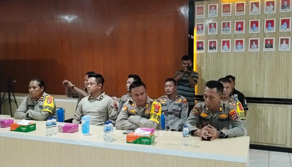 Press Release akhir tahun dipimpin oleh Kapolresta Manokwari Kombes Pol Rivadin Benny Simangunsong bersama Bupati Manokwari Hermus Indou, Dandim 1801 Manokwari Kolonel Inf.Sukur Hermanto, KaFasharkan TNI AL Manokwari Letkol Laut (T) Angki Ferdianta dan perwakilan dari Kejaksaan Negeri Manokwari, di Mapolresta Manokwari.