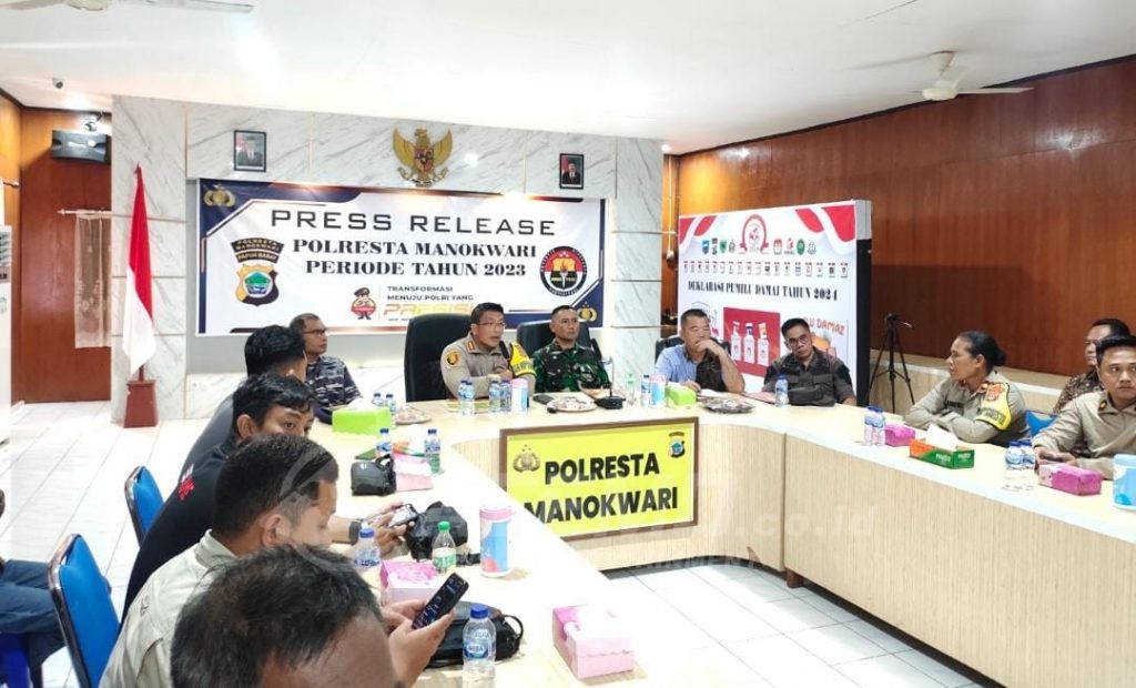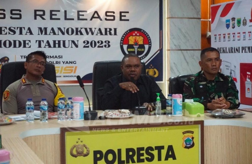 MANOKWARI – Polresta Manokwari melaksanakan Press Release akhir tahun, periode 2023 dengan sejumlah pencapaian terutama dalam menjaga Kamtibmas di Manokwari, Sabtu (30/12/2023).