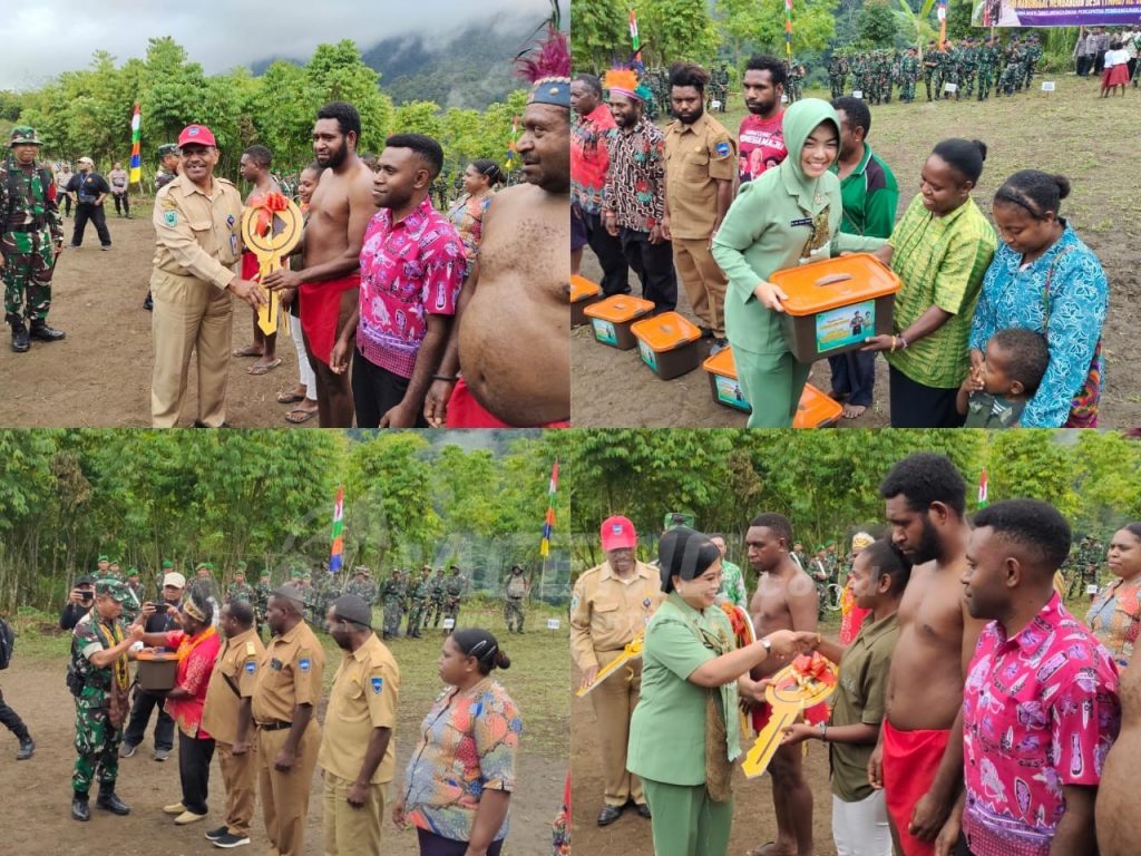 Diakhir upacara penutupan, Pangdam XVIII/Kasuari bersama Dandim 1801/Manokwari menyerahkan sembako kepada perwakilan masyarakat, menyerahkan dan meresmikan lima unit rumah juga meresmikan ruas jalan baru yang di cor sepanjang 400 meter. (ACM_2)