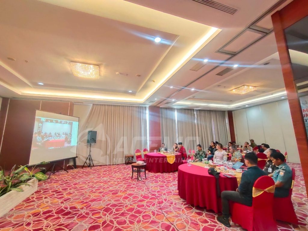 MANOKWARI – Bupati Manokwari bersama Forkopimda pantau perkembangan perhitungan suara dan pergeseran kotak suara menuju Distrik ke masing-masing PPD di tingkat Distrik secara virtual, yang terlaksana di salah satu hotel di Manokwari, Kamis (15/2/2024).