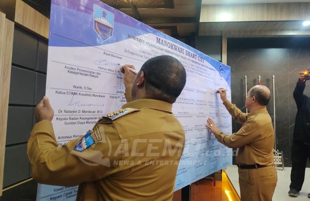 Bupati Manokwari Hermus Indou menyampaikan bahwa Pemerintah Kabupaten Manokwari bersama Kementerian komunikasi Republik Indonesia dalam menandatangani kesepakatan tentang implementasi gerakan menuju kota cerdas Kabupaten Manokwari tahun 2023.