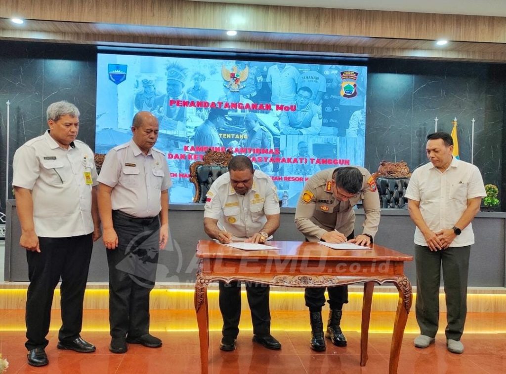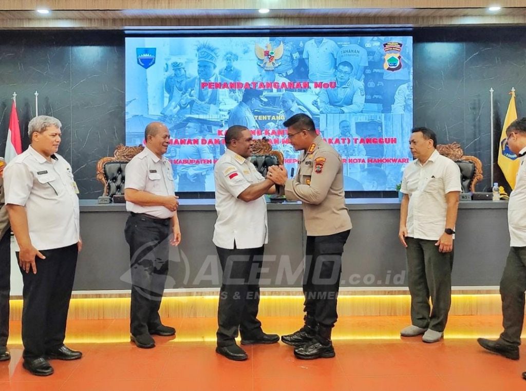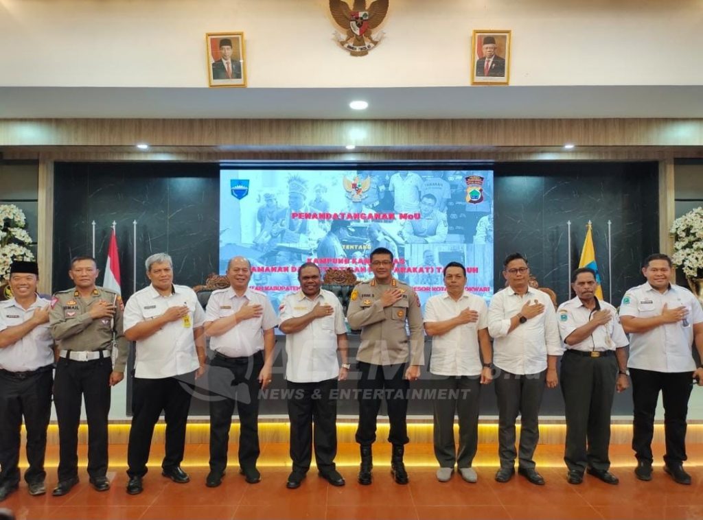 MANOKWARI – Guna memperketat keamanan dan ketertiban daerah, Pemda Manokwari meneken nota kesepakatan (MoU) dengan Kepolisian Resor Kota (Polresta) Manokwari dalam membentuk Kampung Kamtibmas, yang berlangsung di Sasana Karya, Rabu (11/10/2023).