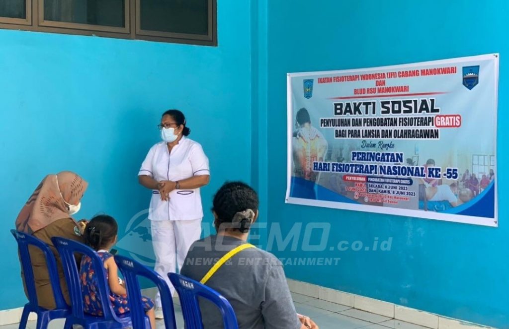 MANOKWARI – Peringati Hari Fisioterapi Nasional ke-55, Ikatan Fisioterapi Indonesia (IFI) Kabupaten Manokwari dan BLUD Manokwari menggelar penyuluhan dan pengobatan Fosioterapi gratis di Poli Fisiologi BLUD RSUD Manokwari, Selasa (6/6/2023).