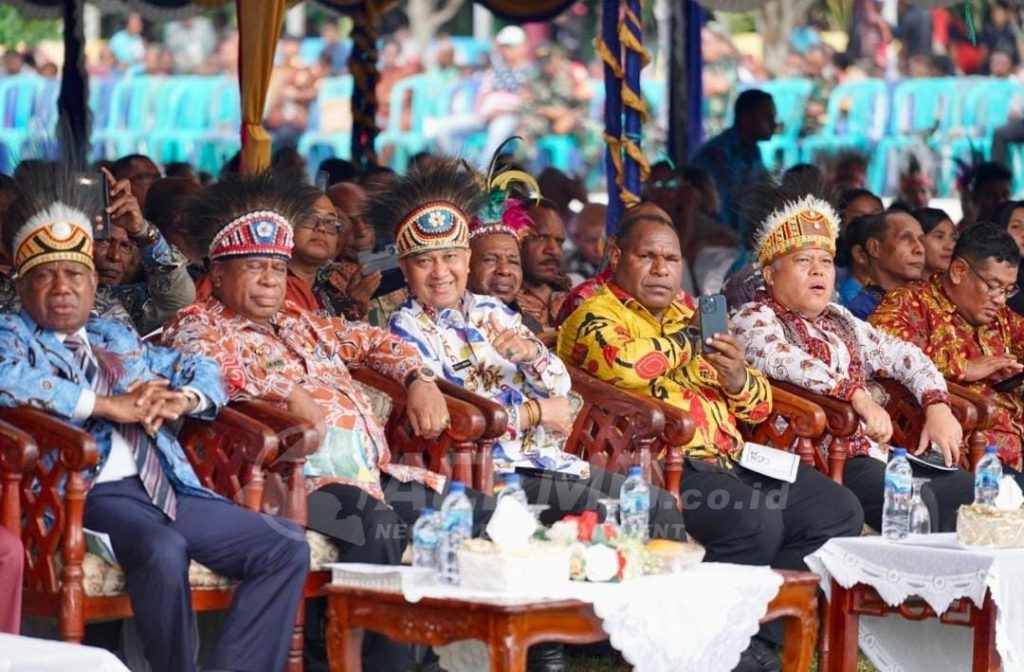 MANOKWARI – Wakil Presiden, Ma’ruf Amin membawa pesan damai saat perayaan HUT ke-169 Pekabaran Injil di Tanah Papua yang disampaikan oleh Deputi Bidang Kebijakan Pemerintahan dan Wawasan Kebangsaan Sekretariat Wakil Presiden Republik Indonesia Velix Vernando Wanggai, saat perayaan HUT PI di Pulau Mansinam, Senin (5/2/2024).