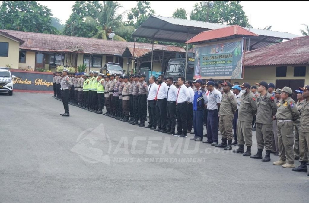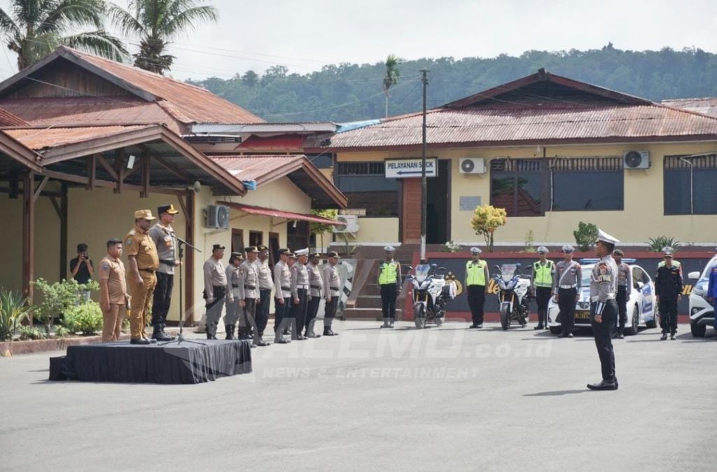 MANOKWARI – Bupati Manokwari Hermus Indou bersama Kapolresta Manokwari Kombes Pol. Rivadin Benny Simangunsong memimpin apel gelar pasukan operasi Ketupat Mansinam tahun 2023, di lapangan apel Polresta Manokwari, Senin (17/4/2023).