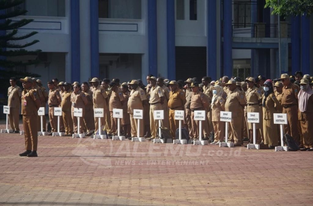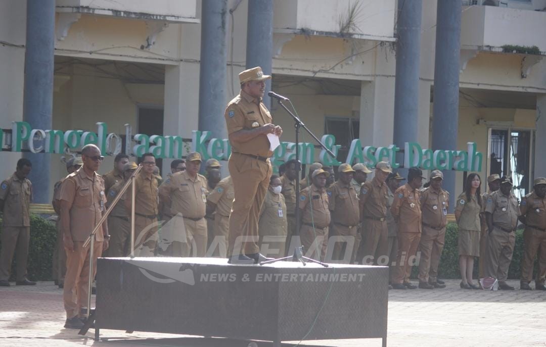 Apel yang dilaksanakan di halaman kantor Bupati diikuti oleh seluruh pimpinan OPD dan ratusan ASN di lingkup pemerintah daerah Kabupaten Manokwari.