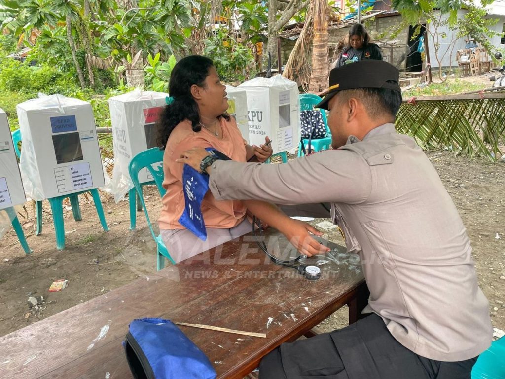 MANOKWARI – Polresta Manokwari memberikan pelayanan pengecekan kesehatan kepada personil PAM TPS dan petugas KPPS yang sedang menjalankan tugas perhitungan suara pada Pemilu 2024, Kamis (15/2/2024).