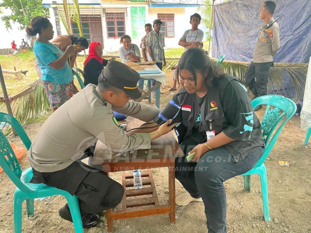 Pemeriksaan kesehatan oleh personil Dokkes Polresta Manokwari dalam rangka memastikan seluruh personil dan petugas KPPS termasuk personil Gakumdu yang kurang beristirahat tetap dalam kondisi baik. (ACM_2)