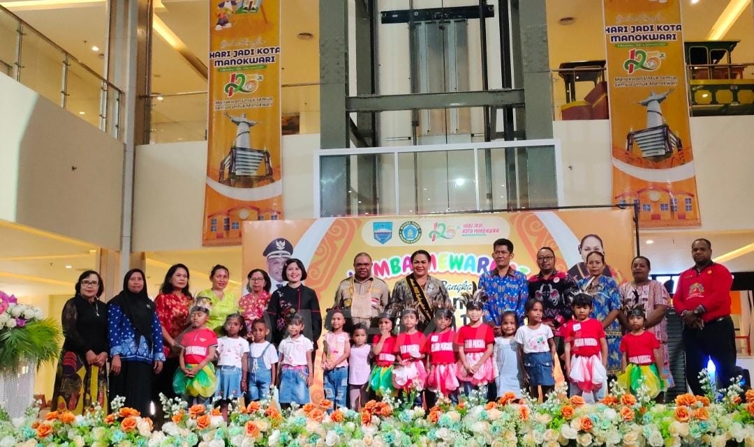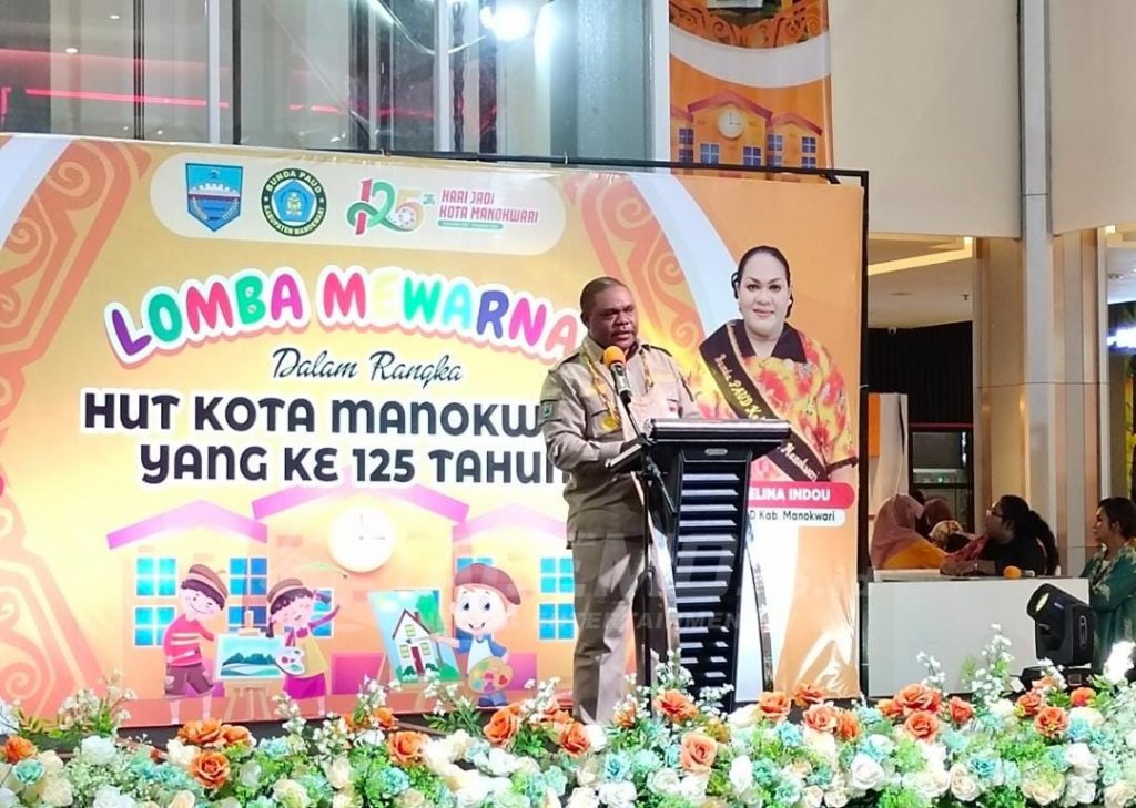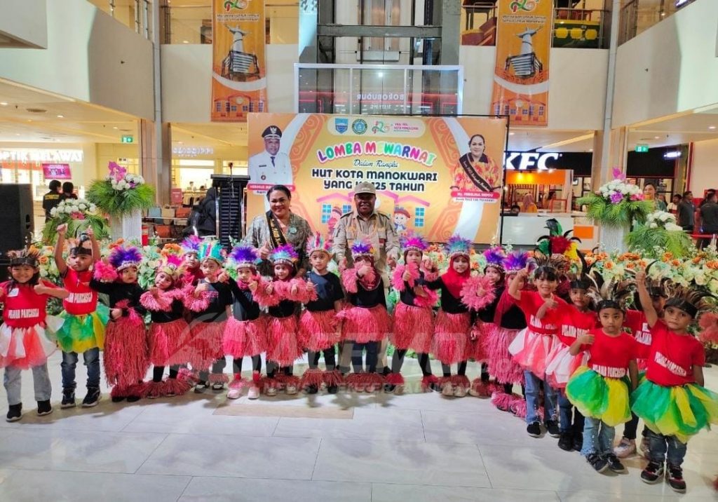 MANOKWARI – Semarak HUT Kabupaten Manokwari ke-125 tahun, sebanyak 45 anak ikuti lomba mewarnai, yang dibuka oleh Bupati Manokwari dan Bunda Paud Kabupaten Manokwari disalah satu Mall di Manokwari, Jumat (10/11/2023).