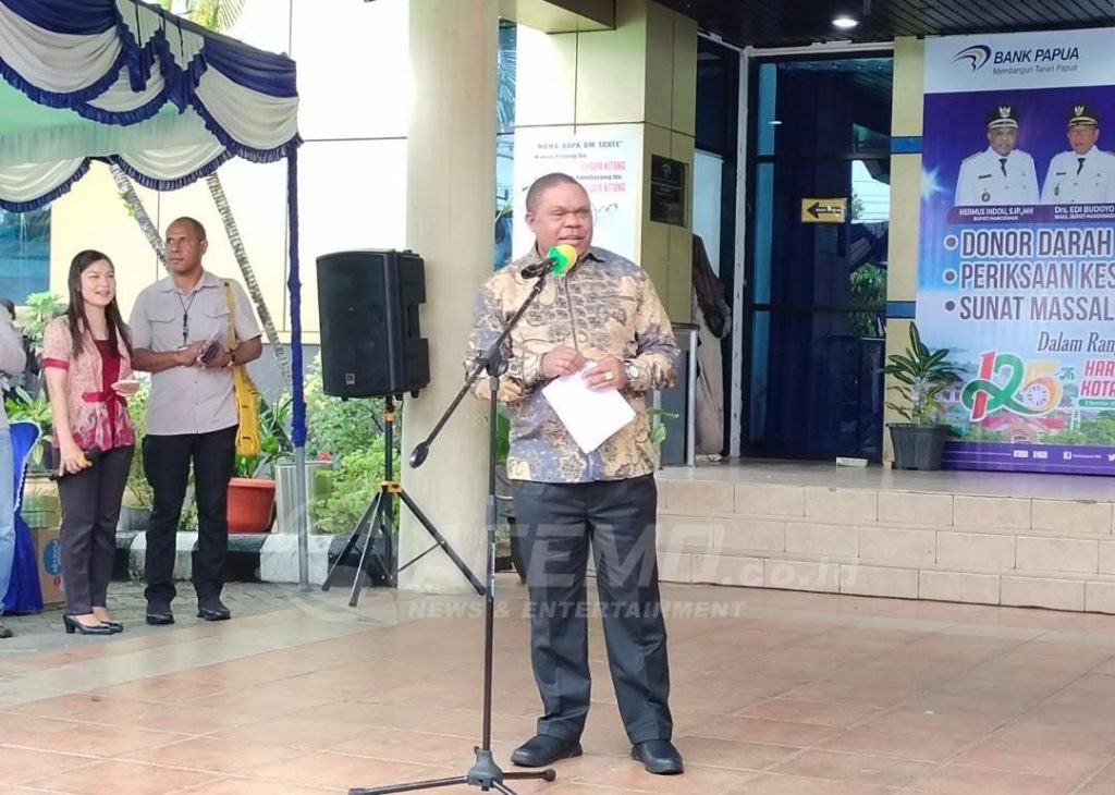 Bupati Manokwari Hermus Indou dalam sambutannya memberikan apresiasi kepada instansi dan dinas yang sudah berkolaborasi untuk memberikan pelayanan kesehatan melalui donor darah, khitanan massal dan pemeriksaan kesehatan gratis yang dilakukan dalam rangka menyongsong hari jadi Kota Manokwari yang ke-125.