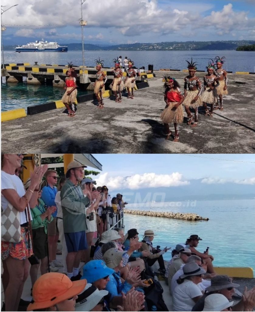 MANOKWARI – Usai mengunjungi pulau Roon di Kabupaten Teluk Wondama, Kapal Pesiar MH MINERVA SWAN HELLENIC kembali mengunjungi Pulau Mansinam untuk kedua kalinya, Kamis (23/4/2026). Sebelumnya Kapal Wisata yang membawa 101 Wisatawan Mancanegara dari New Zealand, Italy, UK, USA, Germany, Sweden, Canada dan Rusia ini mengunjungi Pulau Mansinam pekan lalu.