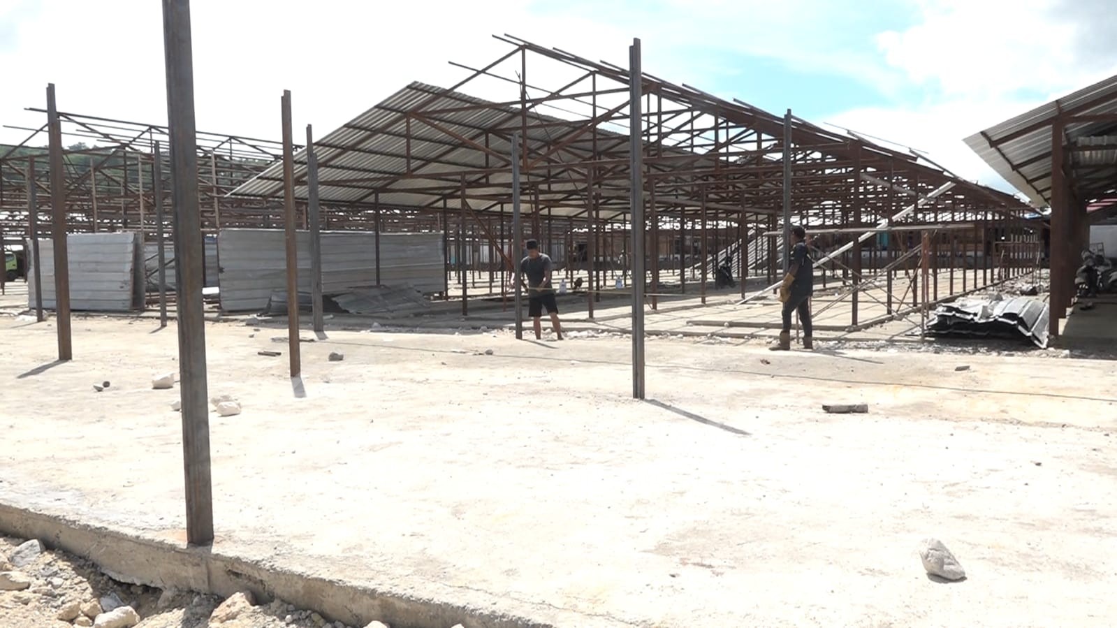 MANOKWARI – Pembangunan pasar darurat Wosi yang ditargetkan akan diresmikan pada akhir September ini, belum rampung sepenuhnya disisa dua pekan pengerjaannya.
