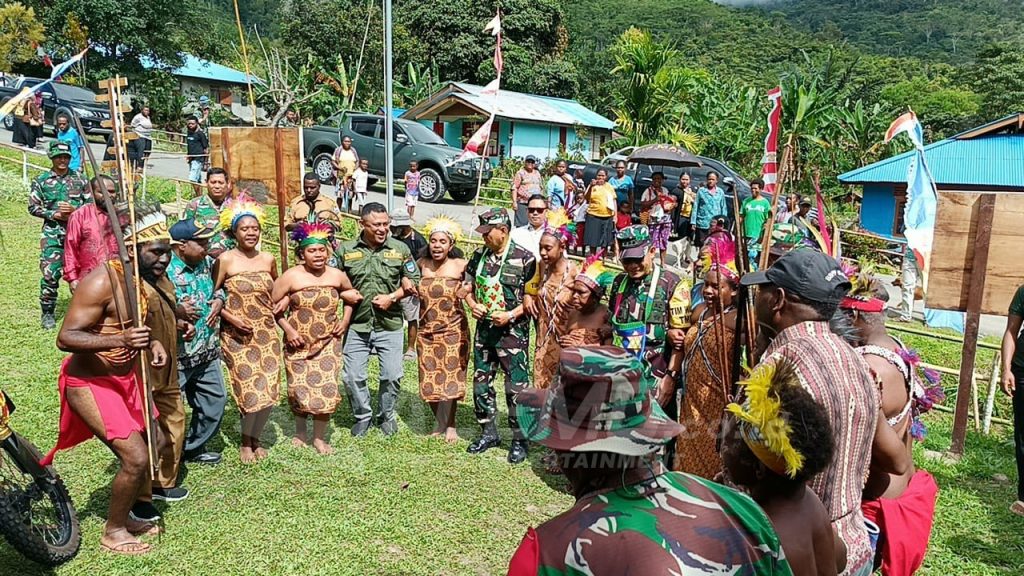 Setibanya di lokasi, Ketua Tim Wasev yang didampingi Dansatgas TMMD Kodim 1801/Manokwari Letkol Inf Agus Prihanto Donny.,S.Sos langsung disambut meriah masyarakat Kampung Kwau dengan tarian adat tumbuk tanah dan pengalungan tas noken yang dipimpin langsung oleh Kepala Kampung Kwau dan Kepala Suku.