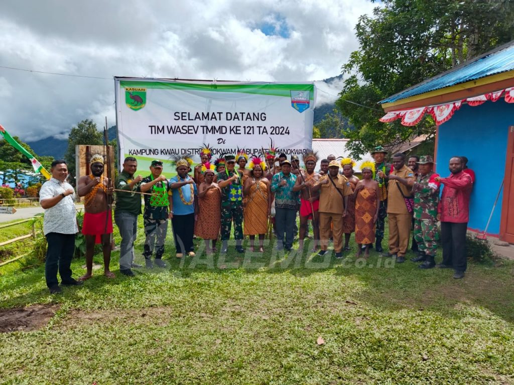 MANOKWARI -Tim Pengawasan dan Evaluasi (Wasev) yang diketuai Paban V/Bakti TNI Ster TNI Kolonel Arm Dr. Saripudin, S.Sos, M.Si meninjau lokasi TNI Manungggal Membangun Desa (TMMD) Ke-121 Kodim 1801/Manokwari di Kampung Kwau Distrik Mokwam, Kabupaten Manokwari, Provinsi Papua Barat, Kamis (15/8/2024).