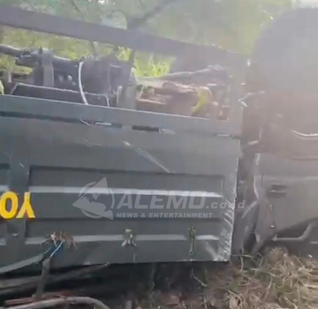 Truk Angkut Anggota Batalyon Infanteri Yonif/761 KA Terguling Di Warmare