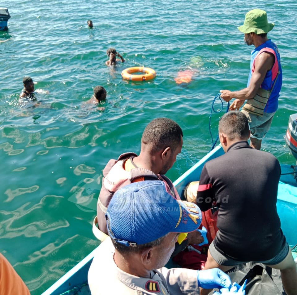 Kemudian pukul 15.30 WIT, korban di evakuasi dengan cara diangkat ke perahu masyarakat dan selanjutnya di bawa ke RSUD Teluk Wondama.